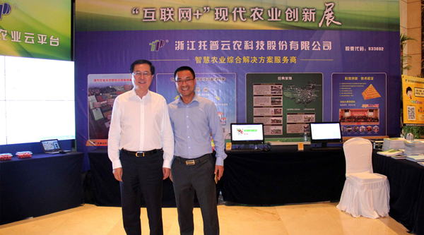 浙江省委副书记、代省长车俊一行也莅临托普云农展区,公司董事长陈渝阳、常务副总朱旭华向车省长介绍讲解了公司物联网项目的实施应用情况以及现阶段在现代农业领域取得的成绩,得到了车省长的肯定与赞许。