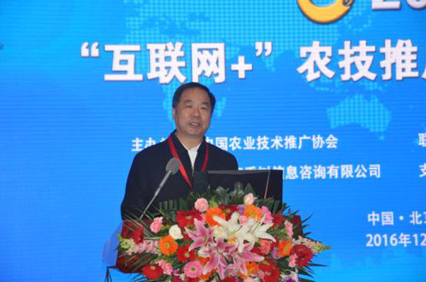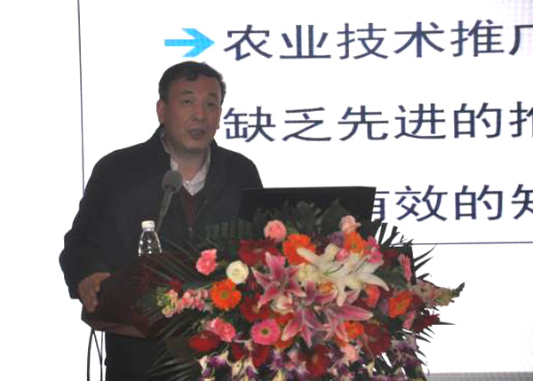 全国农业技术推广服务中心种业信息与技术处处长王玉玺作关于“互联网+农技推广如何“落地开花”的思考与探索”的报告