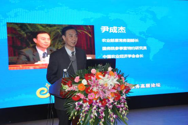 农业部原常务副部长、国务院参事室特约研究员、中国农业经济学会会长尹成杰作大会主旨报告
