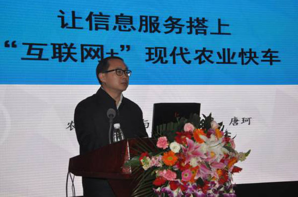 农业部市场信息司唐珂司长以“让信息服务搭上‘互联网+’现代农业快车”为主题,从“互联网+”现代农业相关政策解读、农业部“互联网+”现代农业行动成效、信息进村入户工程三个方面作了报告,受到与会代表的热烈欢迎。