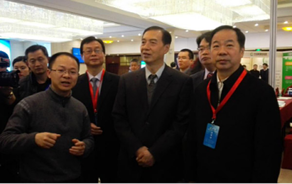论坛进行期间,农业部尹成杰原副部长、全国农业技术推广服务中心陈生斗主任、全国农业技术推广服务中心谢建华副主任等领导莅临托普云农展位,参观视察托普云农农业物联网,并与朱旭华常务副总进行了亲切交流。
