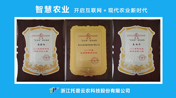 此次峰会,托普云农共获得三项大奖:托普云农董事长陈渝阳荣膺“2016农业信息化年度领军人物”、常务副总朱旭华荣膺“2016智慧农业技术创新人物”、托普云农获“2016十佳农业物联网企业”称号。