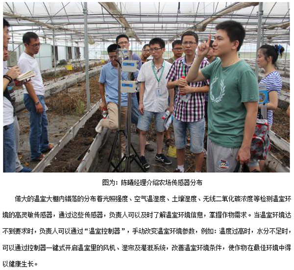 乔司农场是浙江省首家集规模种植、科研生产、网络销售、宅配服务为一体的国家级农业综合开发绿色蔬菜生产基地。2014年4月中旬,托普物联网系统在乔司农场成功搭建运行。 随后的8月2日,销售部全体员工在时任营销经理陈曦的带领下前往乔司农场,观看农场内的物联网系统运行情况。