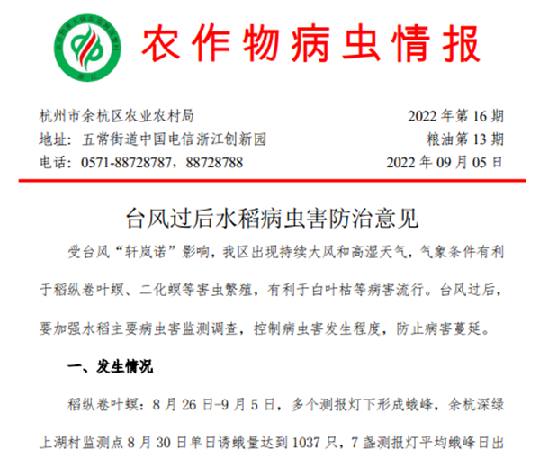 ½ñÄê7Ô£¬Õã½Ê¡ÒÀÍÐÍÐÆÕÔÆÅ©ÖÇÄܳæÇé²â±¨µÆ£¬ÓÐЧ¼à²âµ½¶þ»¯Ãø³æÇ飬ÖúÁ¦µ±µØÖ²±£²¿Ãż°Ê±µ÷Õû·À¿Ø²ßÂÔ£¬×î´óÏ޶ȱ£ÕÏÁ¸Ê³°²È«¡£