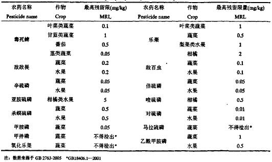 ±í Ê߲ˡ¢Ë®¹ûÖÐÓлúÁ×ũҩ×î´ó²ÐÁôÏÞÁ¿
