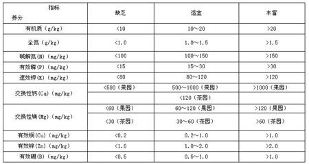 表1 福建省耕地土壤养分丰缺指标(试行)