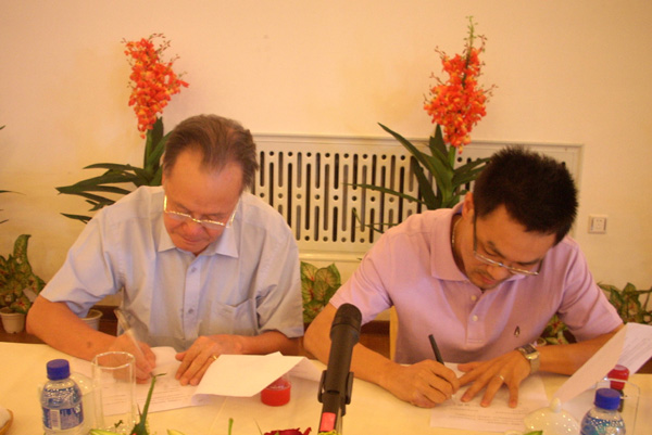 图1蒋士强(左)与陈渝阳签约