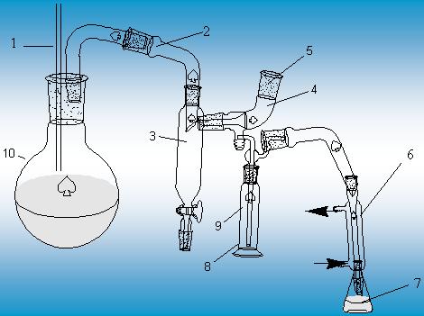 1.安全管 2.导管 3.汽水分离管 4.样品入口 5.塞子6.冷凝管 7.吸收瓶 8.隔热液套