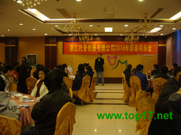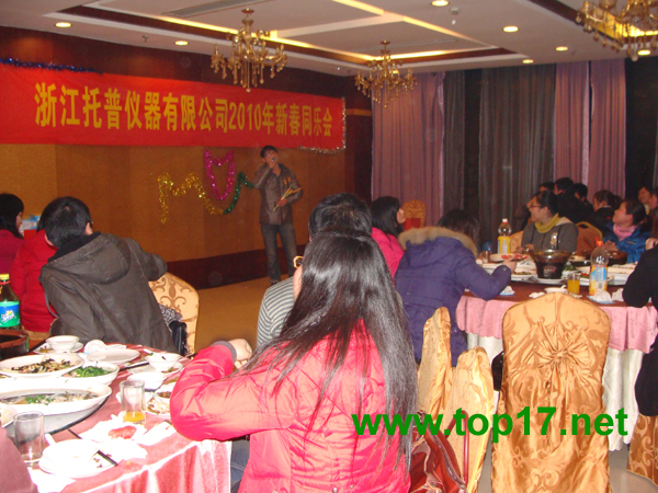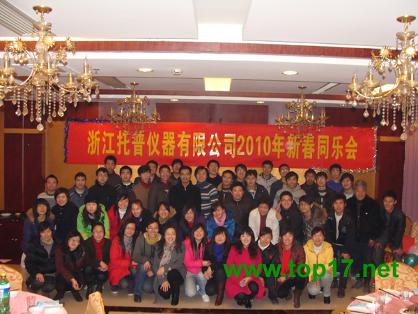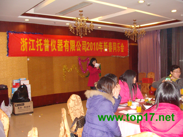 温馨的时刻,美好的夜晚,在这辞旧迎新之际,浙江托普仪器有限公司迎来了2010年新春联欢晚会。连日的阴雨天气没有阻隔我们举杯畅饮的潇洒,新年的步步逼近让我们徜徉于欢乐喜庆的海洋,一次次活动,让我们释放着青春的激情,一声声呐喊,将现场的气氛推至高潮。我们笑了,硕果累累的2009年结束了,一年的努力,我们用销售额证明着浙江托普的快速成长,2010年,我们将更加充满信心,迎接新一轮的挑战。