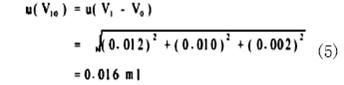 1.5 样品扣除试剂空白(V1-V0)消耗盐酸标准溶液的不确定度u(V10)的分析