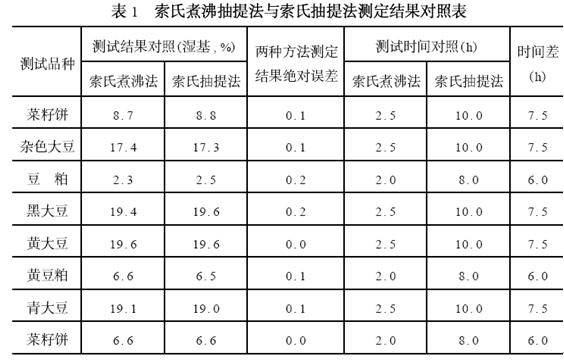 索氏煮沸抽提法快速测定粮食、油料中粗脂肪含量的试验