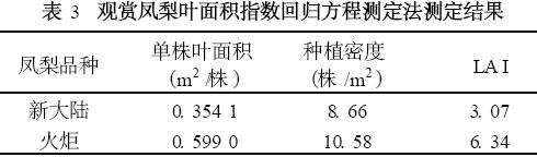 2. 3. 2¡¡Ò¶Ãæ»ýÖ¸ÊýÍÆËã¡¡ÔÚ±»²âÇøÓòÄÚÑ¡Ôñ3ÖêÓдú±íÐԵķïÀæÖ²Öê,²âÁ¿Ã¿Æ¬Ò¶µÄÒ¶³¤,È»ºóÓÃÇ°Ãæ»ñµÃµÄ¹«Ê½¼ÆËãÿÖêµÄÒ¶Ãæ»ý,ÔÙ¸ù¾ÝÖÖÖ²ÃܶÈËã³öLA I(±í3) ¡£