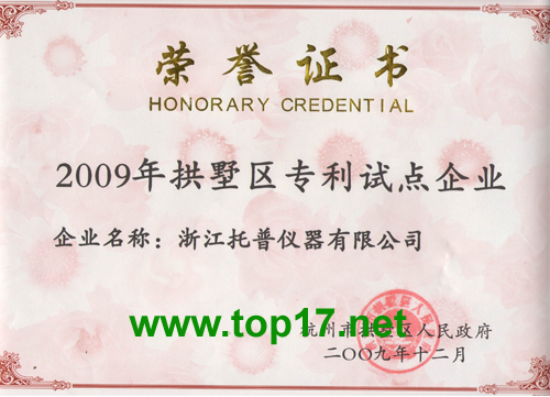 恭喜浙江托普仪器有限公司被评为2009年拱墅区专利试点企业!