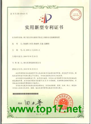 恭喜浙江托普又获近红外光谱手持式土壤养分无损测量装置实用新型专利!