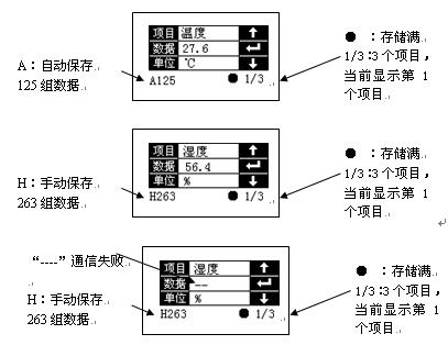 5、手动与自动切换:开机默认手动保存数据,屏幕右下角显示H,需按保存键保存测试参数,如需切换储存状态应按自动/手动按钮,自动状态下显示A,系统按照预设定的时间存储参数;每存储一组数据,屏幕左下角显示数据加一。
