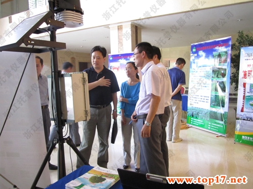 会后全国农技推广中心服务处主任栗铁申,全国农技推广中心处处长高祥照等人,在托普仪器陈渝阳总经理的陪同下参观了设在会议厅外的仪器展台。陈渝阳总经理为栗主任、高处长详细介绍了由浙江托普仪器有限公司生产的旱作节水仪器----土壤水分温度定点监测及远程传输系统。高处长对该系统表现出强烈的兴趣,不时提出问题,并认真听取解答。土壤水分温度定点监测及远程传输系统是农牧业灌溉、水资源合理利用、及抗旱救灾基本信息收集的基础工作。该系统监测数据精准、数据传输方便等优势得到了相关领导的高度赞扬。随着技术的进步,衍生出可无线发送数据,通过网络异地查看,监视墒情变化,可以更快更好为农业领域服务。