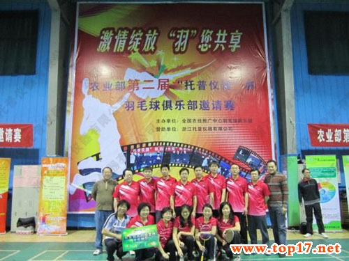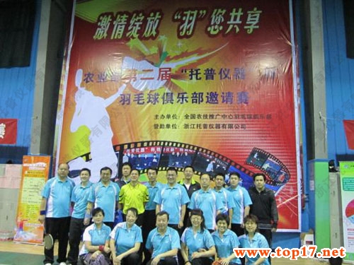 2011年12月24日,第二届农业部“托普仪器”杯羽毛球俱乐部邀请赛在京开赛。本次活动由全国农技推广中心羽毛球俱乐部主办、浙江托普仪器有限公司全程赞助承办。体育是力量的角逐;体育是智慧的较量;体育更是一种人生态度的展示。6支农业羽坛劲旅、90余名羽坛精英将开始四个小时的激烈角逐。
