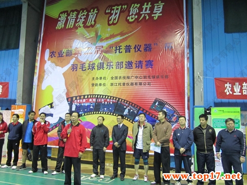 由全国农技推广中心羽毛球俱乐部主办、浙江托普仪器有限公司全程赞助承办的第二届农业部“托普仪器”杯羽毛球邀请赛2011年12月24日在北京贝特羽毛球馆隆重举行。全国农技中心陈生斗主任为本次活动开幕式并致辞。