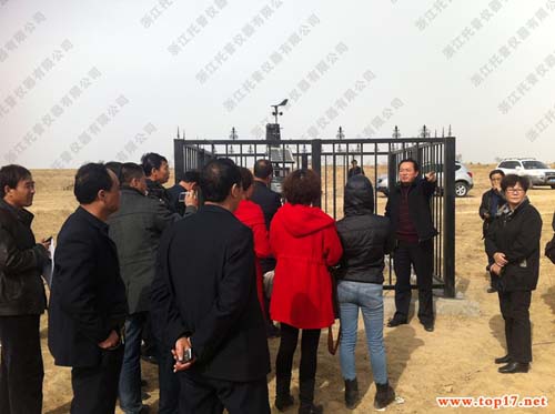 图为:农牧厅一行人前去盐池县农技推广中心土壤墒情监测点进行实地考察