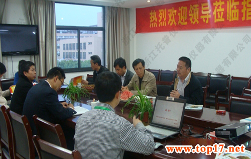首先,朱旭华经理围绕了我公司的发展现状及我公司产品及技术的发展状况进行展开介绍。朱经理先后介绍了公司的发展历程、公司所获得荣誉、公司的科技团队,公司生产的主要产品以及我公司所取得的产品著作权和产品专利,让各位领导对托普仪器公司有了一个全面的了解。