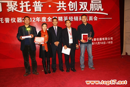 产品主题报告后,托普仪器营销总监陈丽婷经理宣布托普仪器2012年度优秀经销商,并进行表彰。托普仪器期待与各经销商朋友携手并进,在2013年再创佳绩!