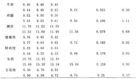 È¡8·Ý²»Í¬ÖÖÀàµÄÑùÆ·£¬·Ö±ð½øÐÐ6´ÎƽÐвⶨ£¬½á¹û±í1£¬¾Í³¼ÆÑ§´¦Àí£¬Æä±äÒìϵÊýÔÚ0.02~%1.50%Ö®¼ä¡£