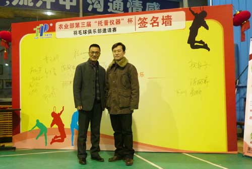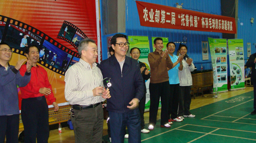 农业部党组副书记、常务副部长、农业部机关羽毛球俱乐部名誉会长危朝安农业部农垦局李伟国局长、全国农技推广中心夏敬源主任、托普仪器公司总经理陈渝阳先生出席开幕式