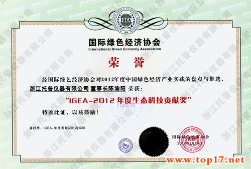 ¡¡¡¡Õã½ÍÐÆÕÒÇÆ÷ÓÐÏÞ¹«Ë¾³ÂÓåÑô×ܾÀíÓ¦Ñû³öϯ´Ë´Î»áÒ飬²¢ÈÙ»ñÓɹú¼ÊÂÌÉ«¾¼Ãлá°ä·¢µÄ¡°IGEA¡ª2012Äê¶ÈÉú̬¿Æ¼¼¹±Ï×½±¡±£¬´Ë½±ÏîÊǾ¹ú¼ÊÂÌÉ«¾¼Ãлá¶Ô2012Äê¶ÈÖйúÂÌÉ«¾¼Ã²úҵʱ¼äµÄÅ̵ãÓëÍÆÑ¡¶ø»ñµÃ¡£