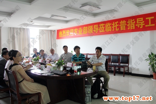 2014年7月5日,农业部原部长、中国农技推广协会名誉会长陈耀邦一行在浙江省农业厅相关领导的陪同下,莅临托普仪器开展调研活动。在详细了解托普仪器发展现状、未来规划之后,调研组与托普仪器管理高层召开了座谈会。