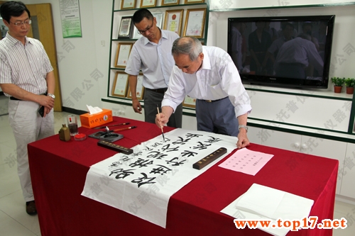 图为:陈耀邦部长为托普仪器题字并与陈渝阳总经理合影