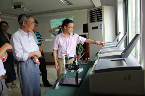 在陈总和朱总的带领下,调研组一行来到仪器设备齐全的产品展厅,展厅里整齐的陈列着植物生理、农业气象、种子检验、农残及果品、土壤检测、植保、粮油检测共7大系列一百多种农业仪器设备。在参观的过程中,陈耀邦部长就研发技术、仪器原理、操作步骤、应用推广等情况进行了细致了解,陈渝阳总经理一一作答,并汇报了公司历年来开展基层农技推广培训情况。