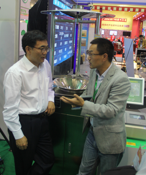 农交会期间,张合成司长一行亲临托普仪器展台考察指导工作,托普仪器陈渝阳总经理详细介绍了此次展出的农业物联网“四大系统”平台:设施农业自动监测与控制平台、农作物病虫害监测预警信息平台、土壤墒情监测与预警信息平台、食品安全监控与追溯信息系统。张合成司长表示,信息化技术是现代农业的重要发展方向,应加强研究力度,提高整体应用水平。