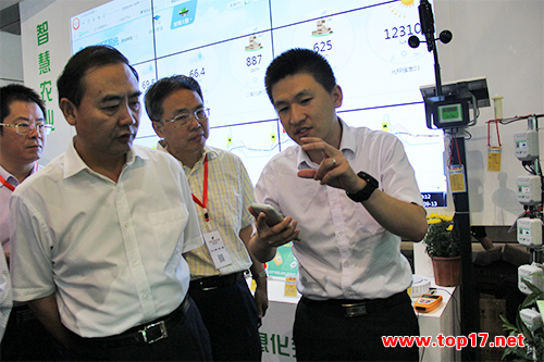 会议期间,安徽省农业委员会孙正东主任莅临托普云农农业物联网展区,并细致观摩了托普云农所展出的大田“四情”监控系统、设施农业监控系统、土壤墒情监控系统等多种农业物联网综合服务平台,以及与之相关的多种仪器和智能硬件设备。在参观过程之中,孙正东主任详细询问了大田“四情”监控系统、远程传输智能虫情测报灯、植物本体传感器、固定式无线农业气象综合监测站等系统设备。陈曦经理为其一一进行介绍。