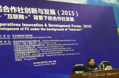 2015年12月12日,为探讨“互联网+”背景下农民合作社如何创新发展、转型升级,农民合作社创新与发展(2015)——“互联网+”背景下的合作社发展研讨班在农业部干部管理学院举办。农业部副部长陈晓华出席研讨班并就农村改革与农村政策问题做主旨报告。浙江托普云农科技股份有限公司(以下简称“托普云农”)是本次研讨班支持单位并应邀参加,陈渝阳总经理出席。