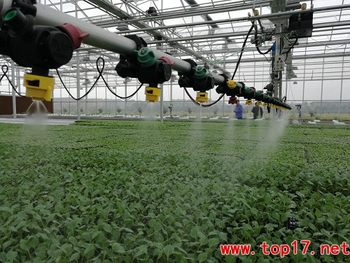 通过托普云农物联网控制的自走式喷灌机在工作中