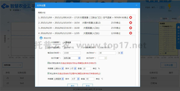 添加水肥任务计划,设置周期计划,实现全智能控制自动控制。用户设定监控条件后,可完全自动化运行,远程控制生产现场的各种农用设施和农机设备,快速实现温室大棚、大田种植
