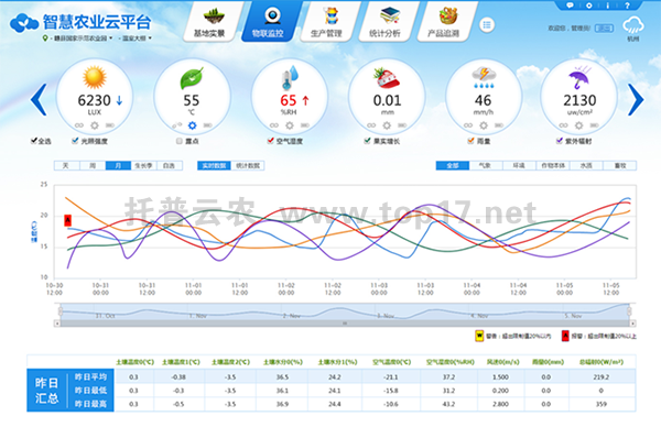 ¿É²é¿´Ô°ÇøÊý¾ÝÇé¿ö£¬¿É°´ÆøÏó¡¢ÍÁÈÀ¡¢Ö²ÎïÉúÀíµÈ²é¿´Ïà¹ØÊý¾Ý£»Ò²¿É°´ÈÕ¡¢ÖÜ¡¢ÔµÈʱ¼ä¶Î»ò×Ô¶¨Òåʱ¼ä¶Î²é¿´Êý¾Ý±¨±í¡£