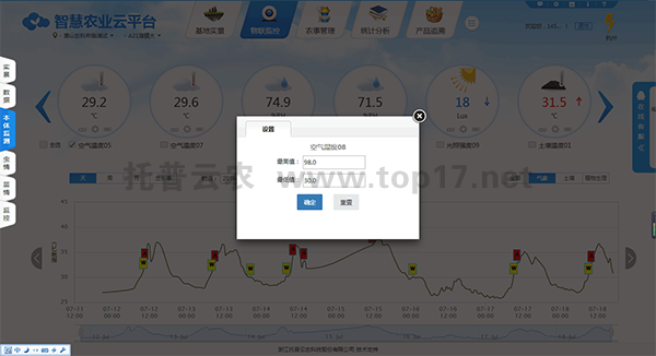 ÉèÖÃ×÷ÎïÉú³¤»·¾³²ÎÊý°²È«ãÐÖµ£¬¸ßÓÚ»òµÍÓÚãÐÖµ±¨¾¯ÏµÍ³Æô¶¯¡£