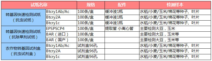其他相关产品:转基因 Bt Cry1Ab/1Ac 快速检测试纸、转基因 Bt Cry1C 快速检测试纸、转基因 Bt Cry2A 快速检测试纸、转基因 Cry1Ab/1Ac 试剂盒、转基因 Cry1C 试剂盒、转基因 Cry2A 试剂盒