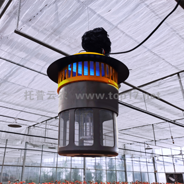 大棚杀虫灯是一款专门用于诱杀温室大棚和果园害虫的杀虫灯,它利用昆虫的趋光趋色性采用光和色诱两种方式诱杀昆虫,昆虫落到储虫仓的过程中触碰到高压电网,可被瞬间高压电击杀死,未被电死的会被风干而死。